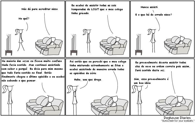 Se para algumas pessoas LOST foi uma série confusa de se assistir, porque pensar ou usar uma certa massa cinzenta é algo tão difícil nestes dias, imagine assistí-la fora de ordem? Divirta-se com a tira abaixo: