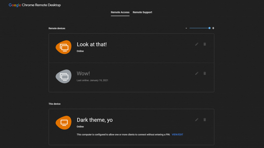 A Área de Trabalho Remota do Chrome pode não ser muito apreciada, mas é uma ferramenta muito boa. Esteja você acessando o computador em casa enquanto está em trânsito, entrando na máquina do trabalho para verificar algo no fim de semana ou apenas ajudando um amigo com algum suporte técnico, é ridiculamente rápido e fácil de usar. E ele acabou de receber uma nova camada de tinta para tornar a experiência um pouco mais atraente, completa com um tema escuro.